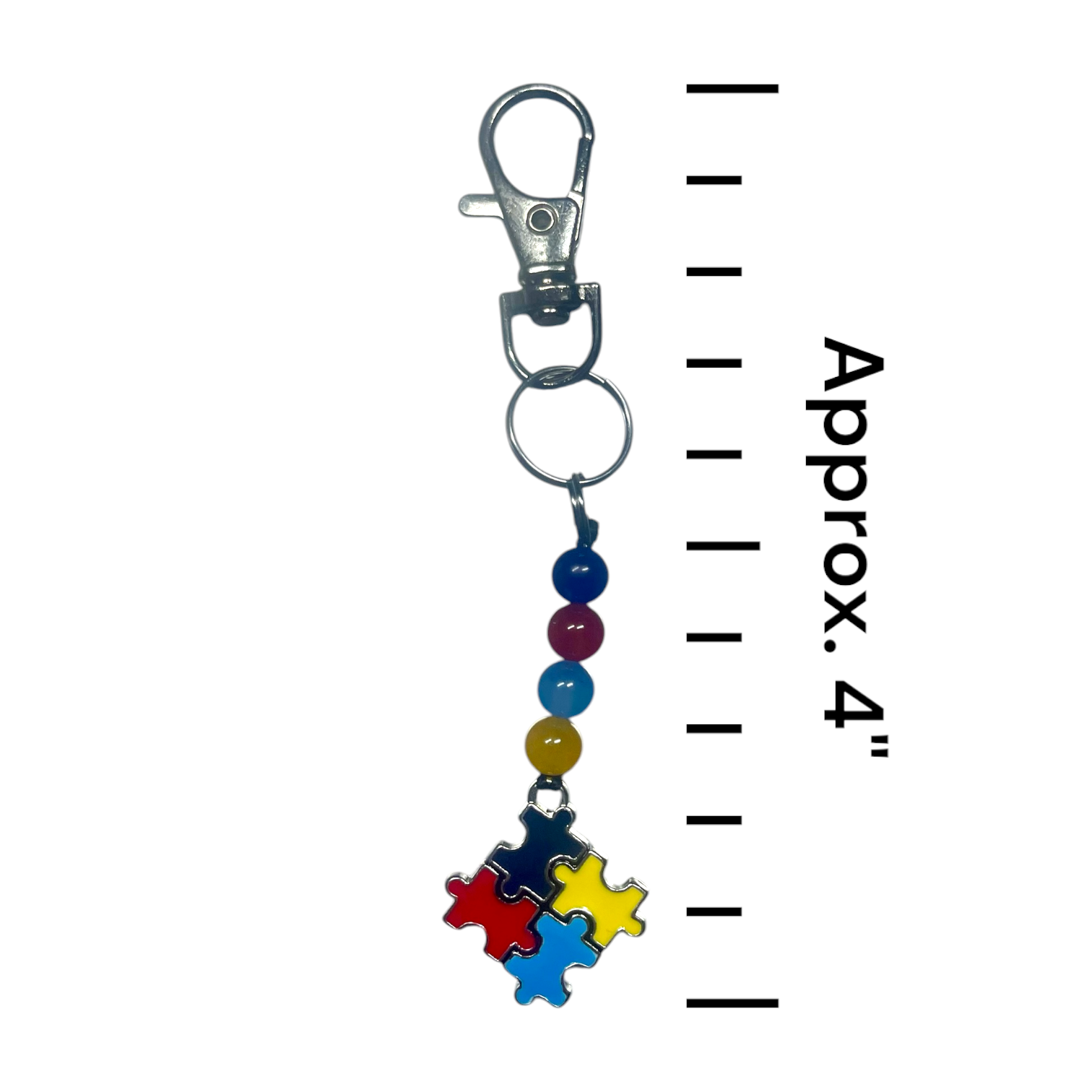 These amazing little autism representation keychains are perfect for your keychain or other suitable areas to show your support!