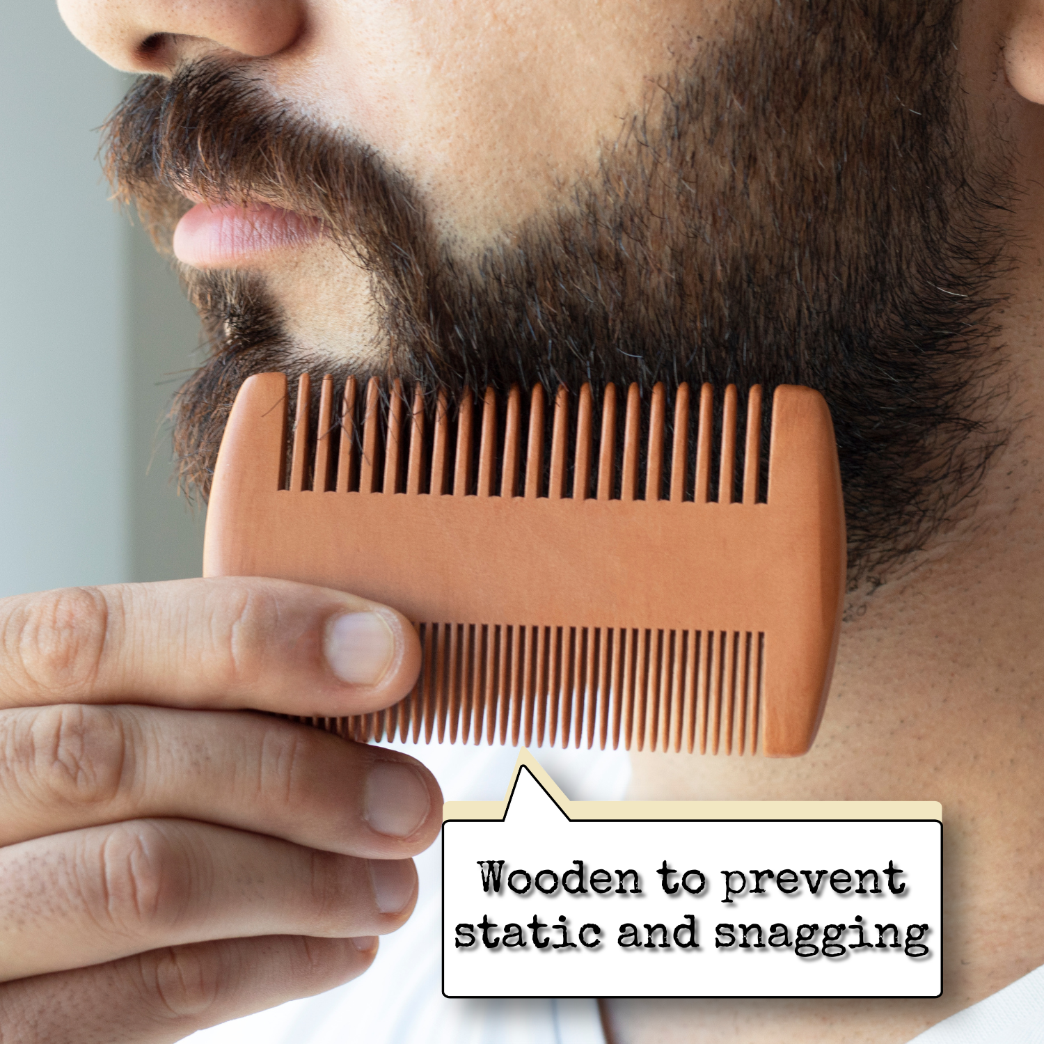 Introducing the Wooden Pocket Comb! This stylish tool enhances your grooming with dual-sided functionality. Perfect for any beard type, it's a must-have for those serious about beard care. Order one comb per package.